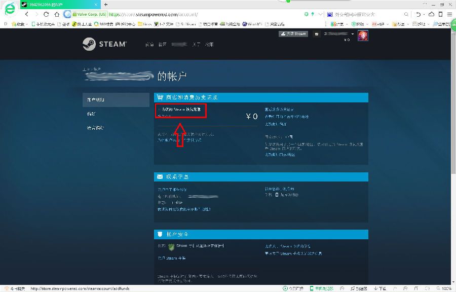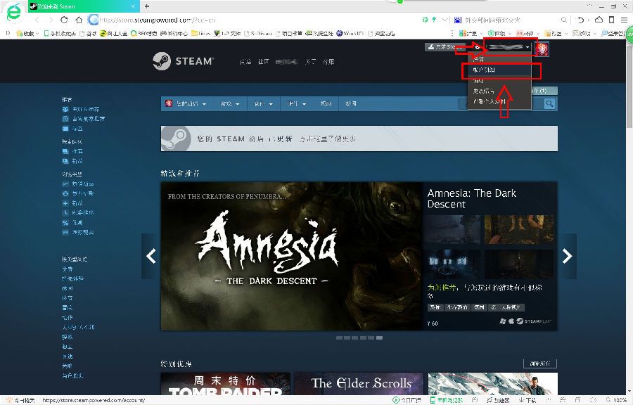 三、或登录steam网页,右上方账号名称下拉箭头,点账号明细