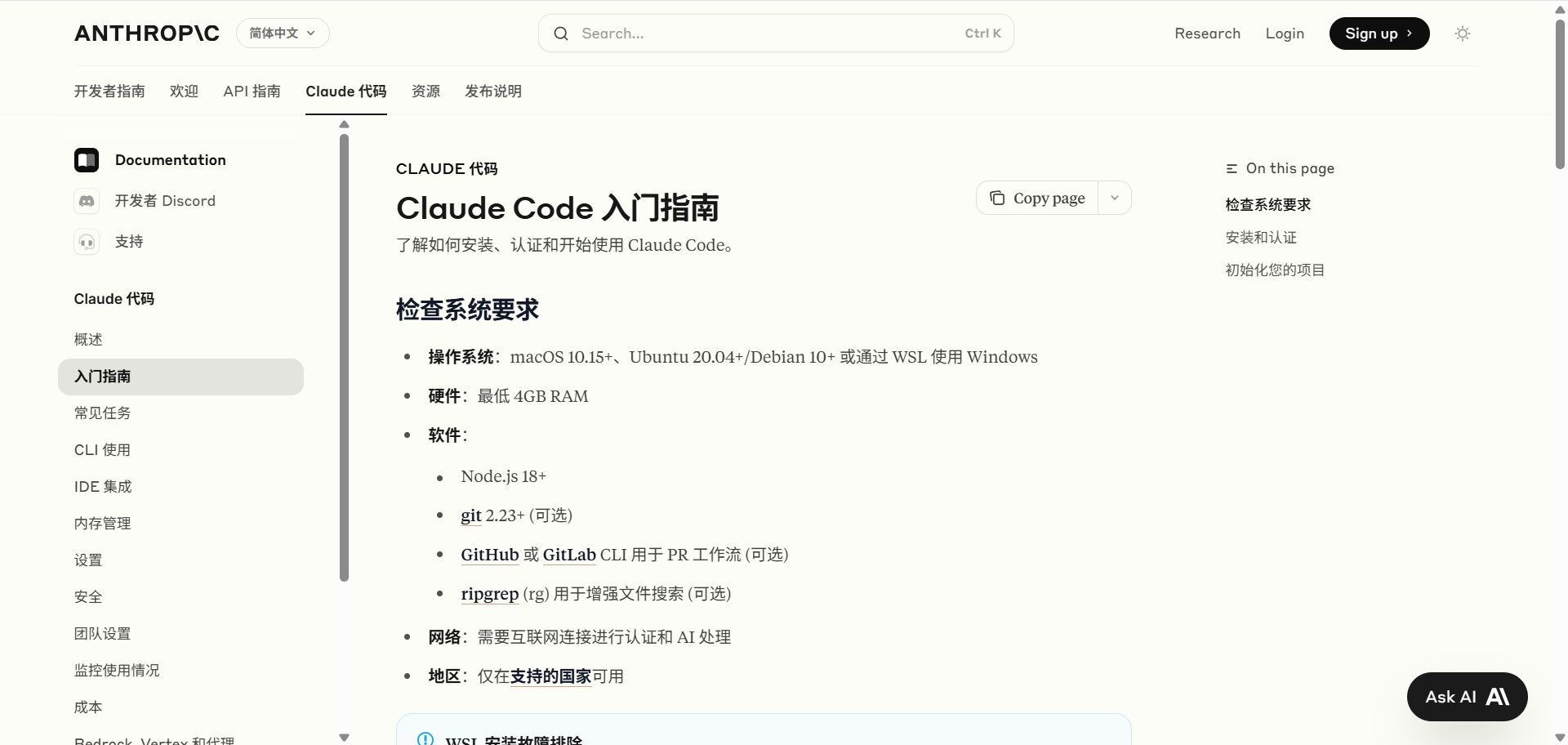 其实Anthropic官网已经给出了中文教程(目前已经支持Windows 系统),请见此链接: