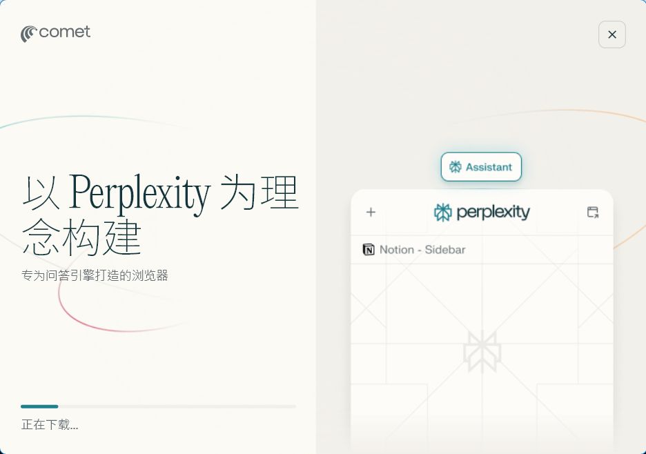 尽管 Perplexity 的 Comet 浏览器极具吸引力,我下载了最新的 comet_installer_latest.exe 文件。然而,点击安装后,它仍需额外下载组件。