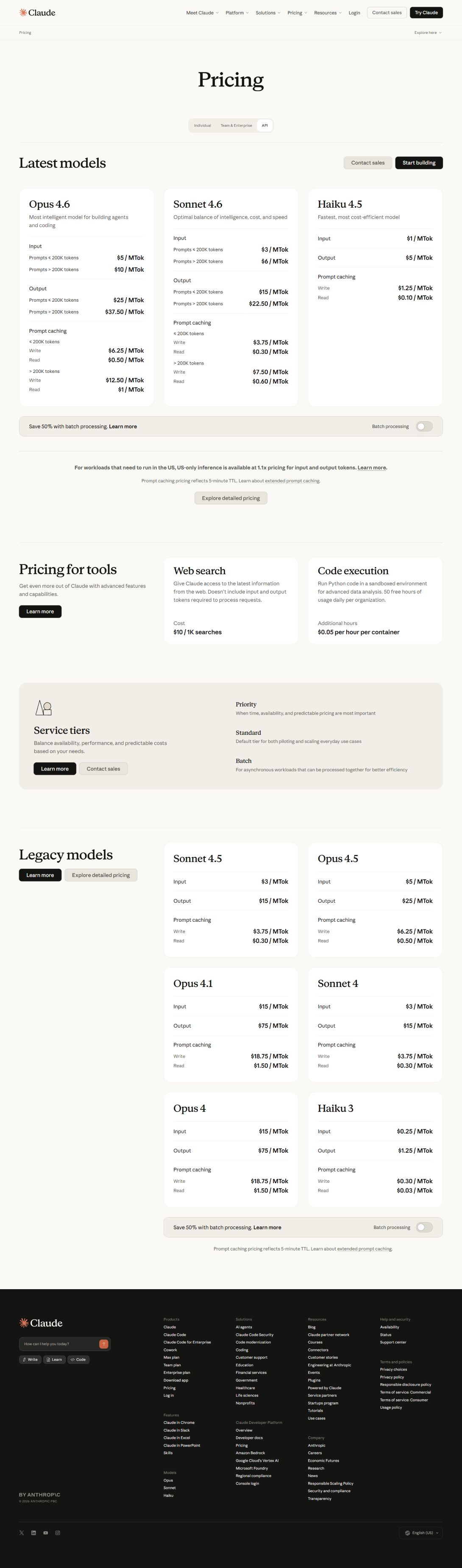 【Claude API价格官网截图】