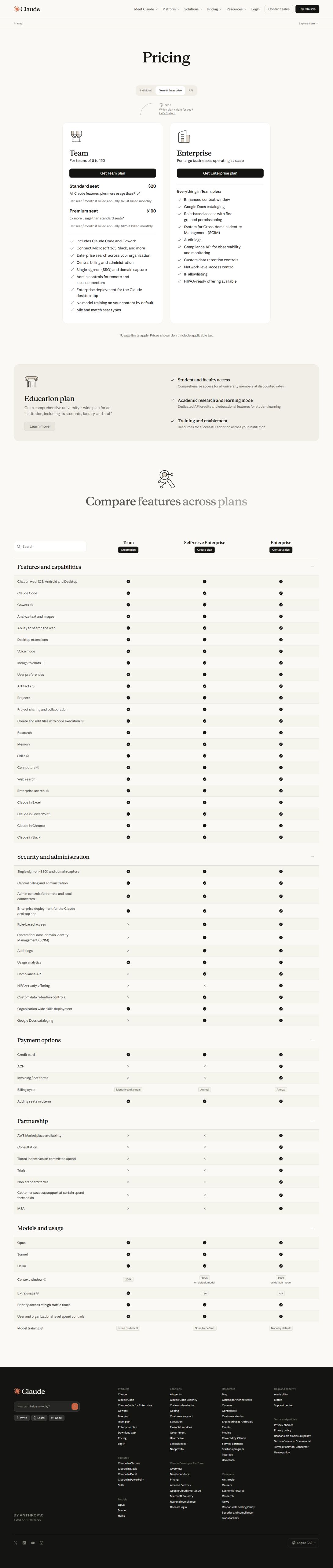 【Claude 团队/企业价格官网截图】